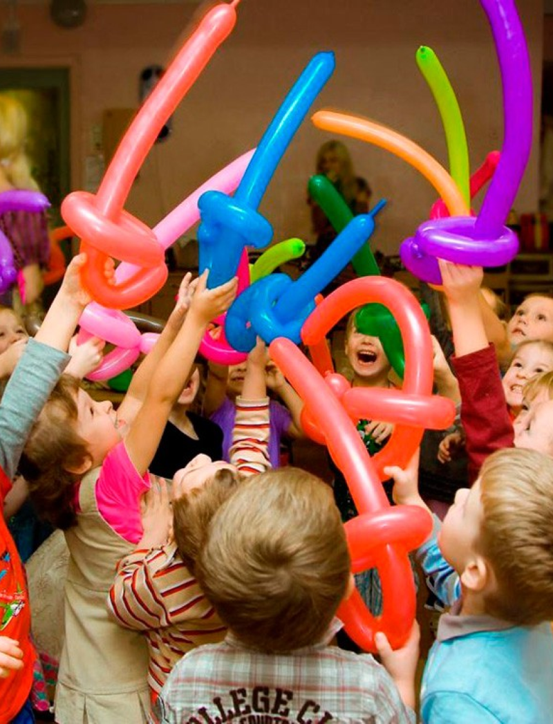Raumdekoration mit Girlanden, Luftballons, Heliumluftballons